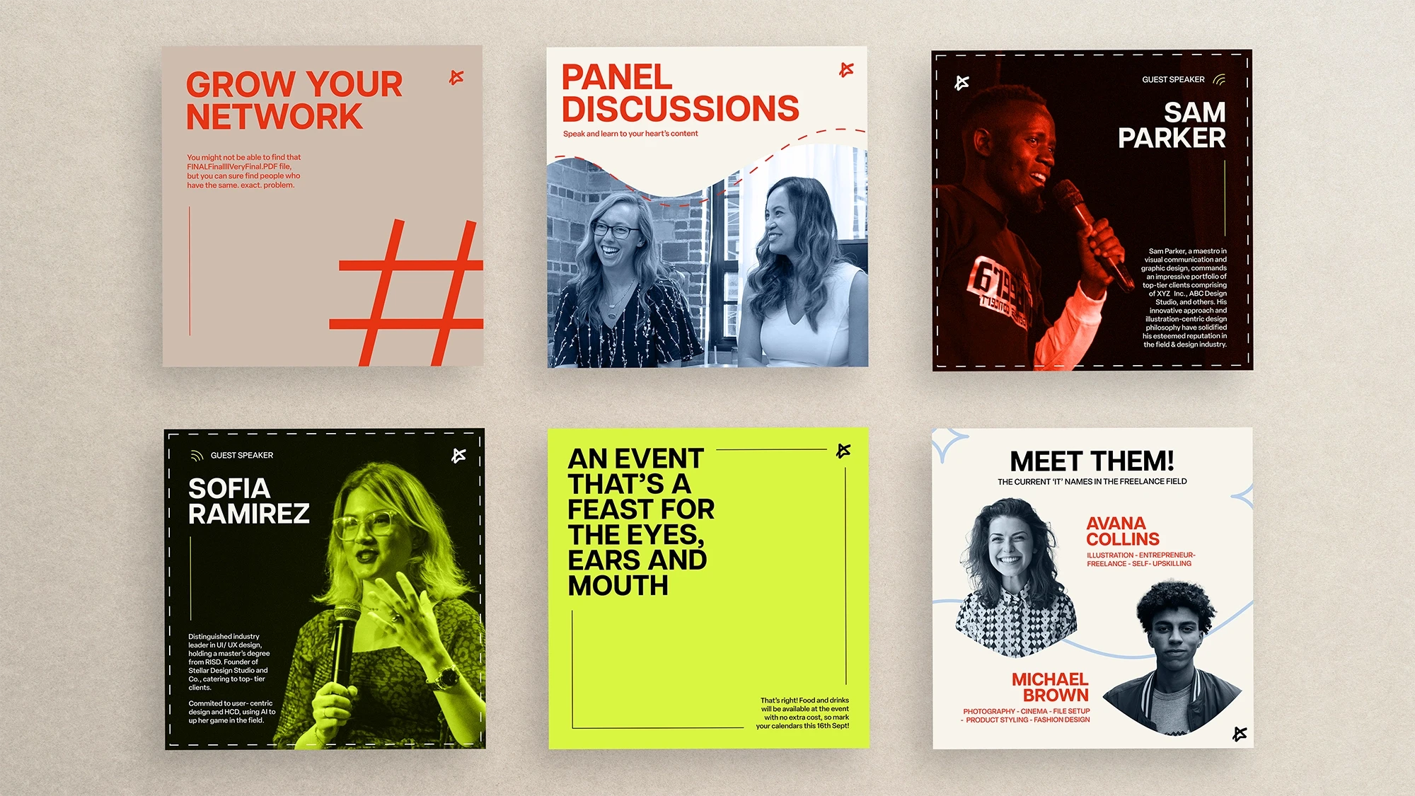 Pixel Palooza is a designers meet and greet event built around community, playfulness, and visual energy. The event branding spanned across various mediums you'd usually see an event advertise themselves in, with banners and social media taking center stage in this project.